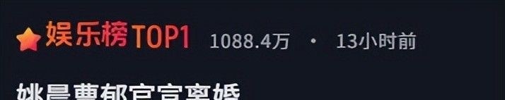 消息甫一落地,“姚晨曹郁离婚”话题火速跃升微博实时热搜TOP3。