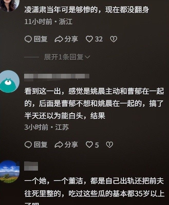 评论区中,不乏以“替凌潇肃讨公道”为名,对姚晨展开人格贬损与隐私窥探的极端言论。