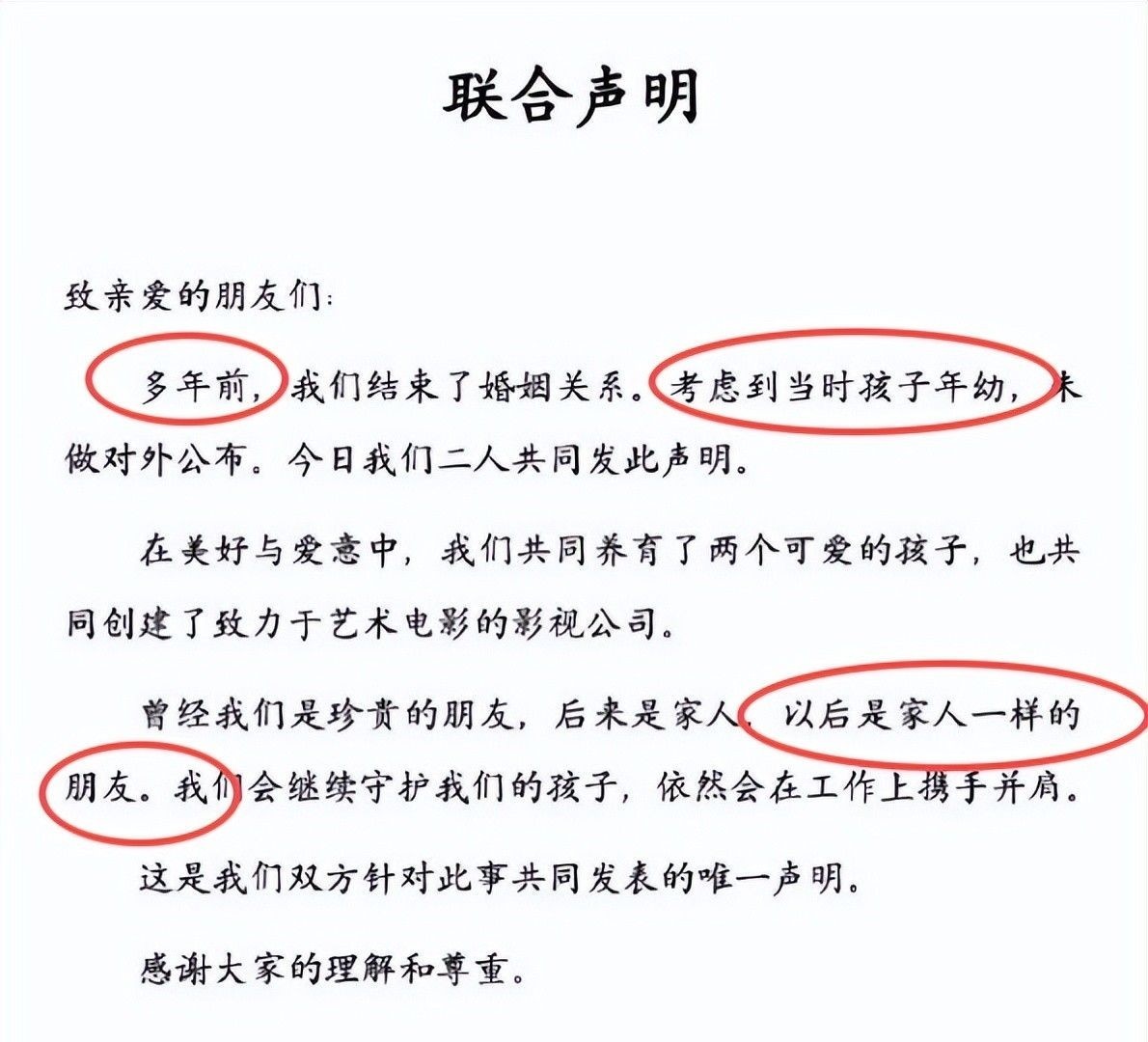 但细读那份声明便可感知其深意:离婚本质是私人领域的重大决定,选择在子女具备独立判断力后坦诚相告,恰恰体现对家庭成员的充分尊重与周全保护。